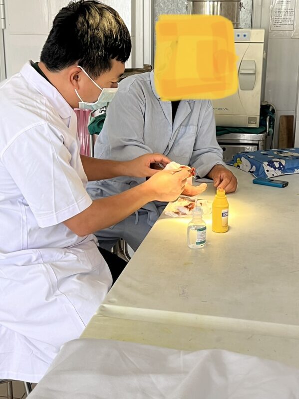 Trường hợp lâm sàng khâu nối tổn thương vùng II (Ishikawa) ngón 1 bàn tay. Tĩnh mạch đầu xa nhỏ và dập nhiều. Tìm được 1 nhánh động mạch và 1 tĩnh mạch ở đầu xa. Tiến hành khâu nối động mạch – động mạch để cấp máu, và tĩnh mạch – tĩnh mạch để