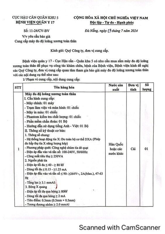 Yêu cầu báo giá cung cấp máy đo độ loãng xương toàn thân