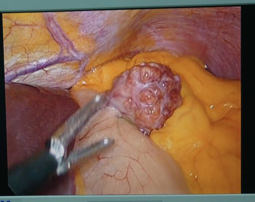 – Bệnh nhân B.T.N.N, nữ, 50 tuổi, vào viện vì đau bụng thượng vị và hạ sườn trái ngày thứ 5, đau quặn thành cơn, không sốt, không buồn nôn, không nôn, không bí trung đại tiện. Nội soi dạ dày phát hiện hình ảnh khối vùng thân vị, theo dõi GIST, bệnh nhân nhập viện điều trị. Bệnh nhân có tiền sử rối loạn tiền đình, thiếu máu mạn tính chưa rõ nguyên nhân, tiền sử ngoại khoa: mổ đẻ năm 2015, không có tiền sử nghiện rượu, hút thuốc lá và sử dụng chất kích thích; không có tiền sử mắc bệnh lý dạ dày trước đây, không ghi nhận gầy sút cân trong 6 tháng.