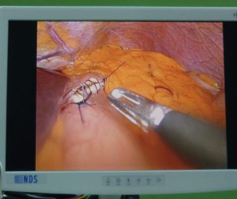 – Bệnh nhân được chẩn đoán Theo dõi GIST thân vị dạ dày/ Thiếu máu mạn tính mức độ trung bình và được điều trị phẫu thuật nội soi cắt dạ dày hình chêm bằng dao siêu âm, lấy u làm giải phẫu bệnh lý, trước và trong mổ được truyền 02 đơn vị hồng cầu khối nhóm máu [O+]. Sau mổ bệnh nhân ổn định, xét nghiệm máu sau mổ: Hồng cầu 5,63 T/l; Hb 110 g/l; HCT 36,9%. Bệnh nhân được xuất viện sau 05 ngày điều trị.