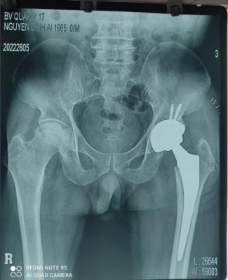 Hư khớp háng (đã điều trị lao 3 tháng) Thay khớp háng toàn phần điều trị hư