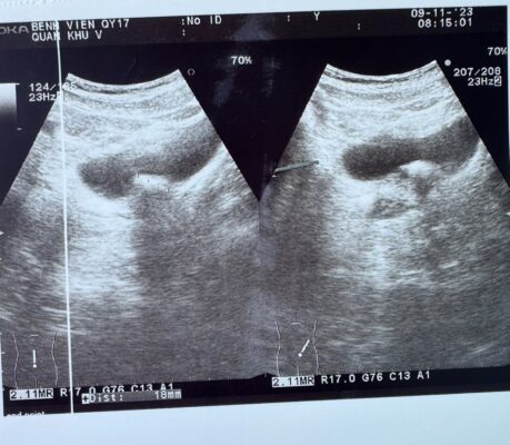 – Bệnh nhân nam 51 tuổi vào viện ngày 19/11/2023 tại Khoa Ngoại chung – Bệnh viện Quân y 17 vì tiểu nhiều lần, tiểu đau, có lúc tiểu máu (nước tiểu hồng nhạt), đi siêu âm bàng quang phát hiện có sỏi bàng quang. Khám lâm sàng: hai thận không lớn, hố thắt lưng bên trái không đau. Cầu bàng quang (-),